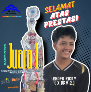 Juara 1 Lomba Badminton O2SN Jenjang SMK Pendidikan Wilayah II Kota Administrasi Jakarta Timur
